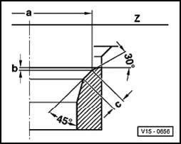 - Calculate max. permissible reworking dimension from measured distance -a- and minimum dimension.