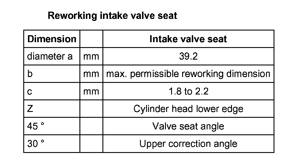 ^ The valve seats should only be reworked just enough to produce a perfect seating pattern. The maximum permissible reworking dimension must be calculated before reworking begins. If the reworking dimension is exceeded, the function of the hydraulic lifters can no longer be guaranteed and the cylinder head should be replaced.