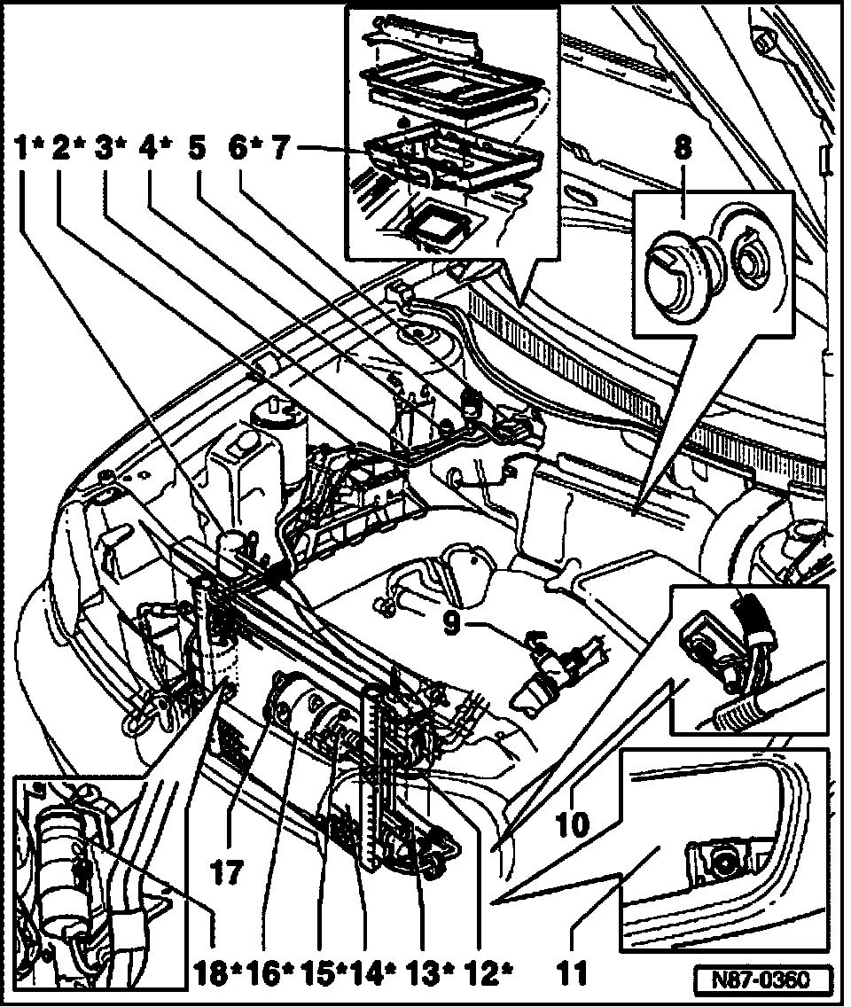 Climatronic Components In Engine Compartment, Servicing