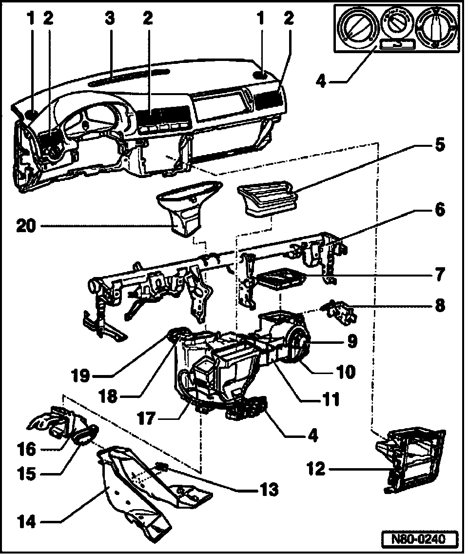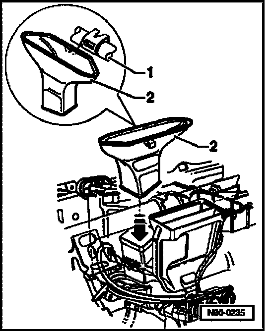 - At the same time position defroster duct -2- in instrument panel cross member -1-.