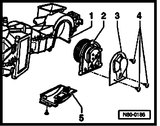 - See Fig. 3, Fresh air blower -V2-, removing and installing