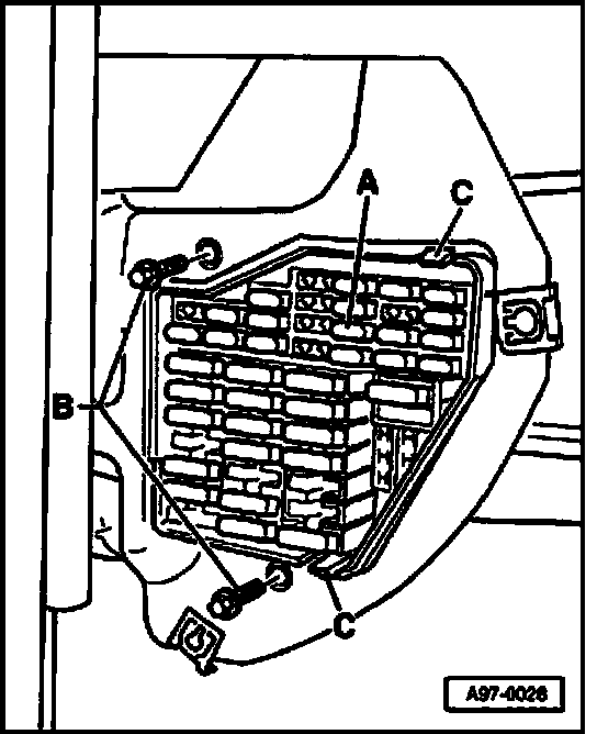- Press locking tab -C- while doing pulling fuse holder -A- out inward.