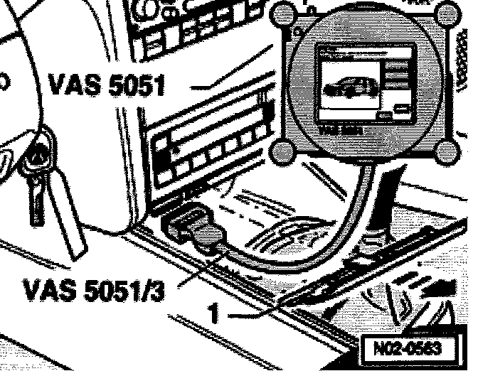 - If using tester VAS 5051, connect diagnosis cable VAS 5051/1 or VAS 5051/3 with ignition switched off to Data Link Connector (DLC).