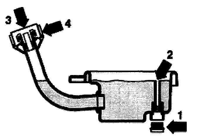 Sealing plug (arrow 3) and cap (arrow 4) remain closed.