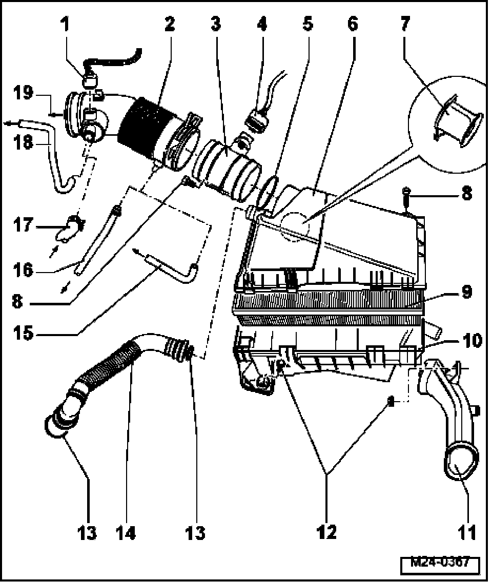Air Cleaner, Disassembling And Assembling (Engine codes AEG, AVH, AZG, BBW, BEV)