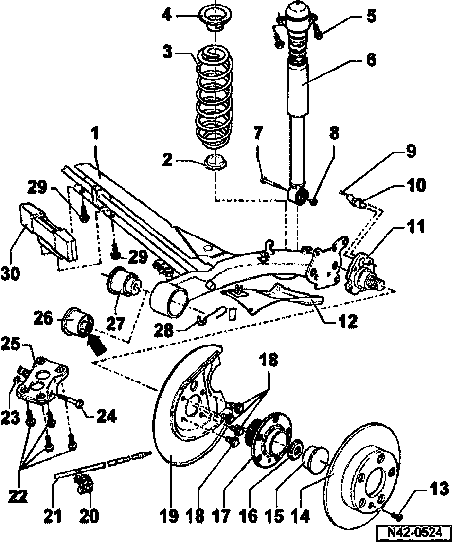 ^ The axle beam must be in the middle position when tightening nut We recommend that the rear of the vehicle be loaded with the weight of one person when tightening