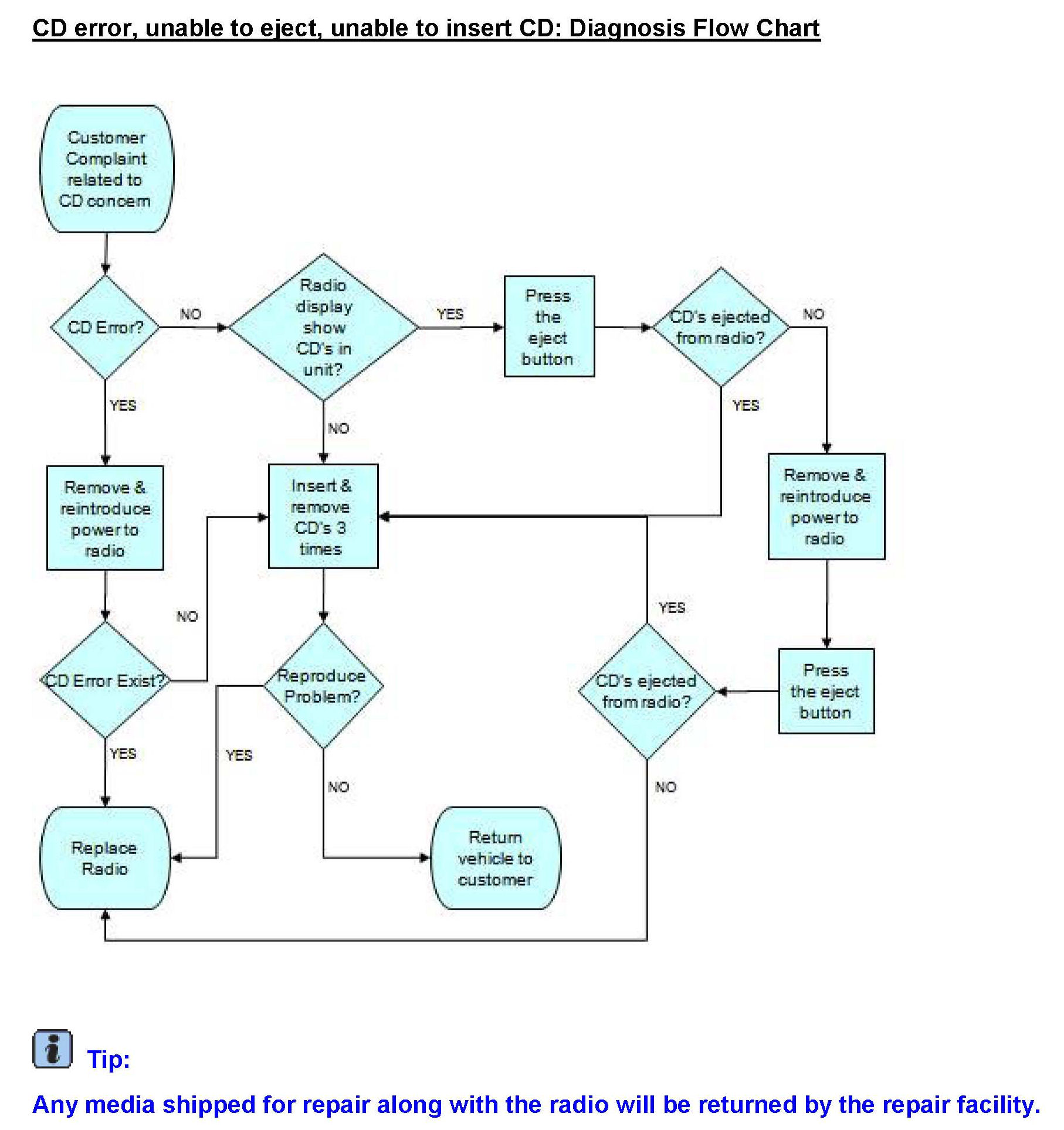^ Is the CD scratched? Check for visual scratches on the CD. Test the CD in another vehicle or household CD player, to duplicate concern.