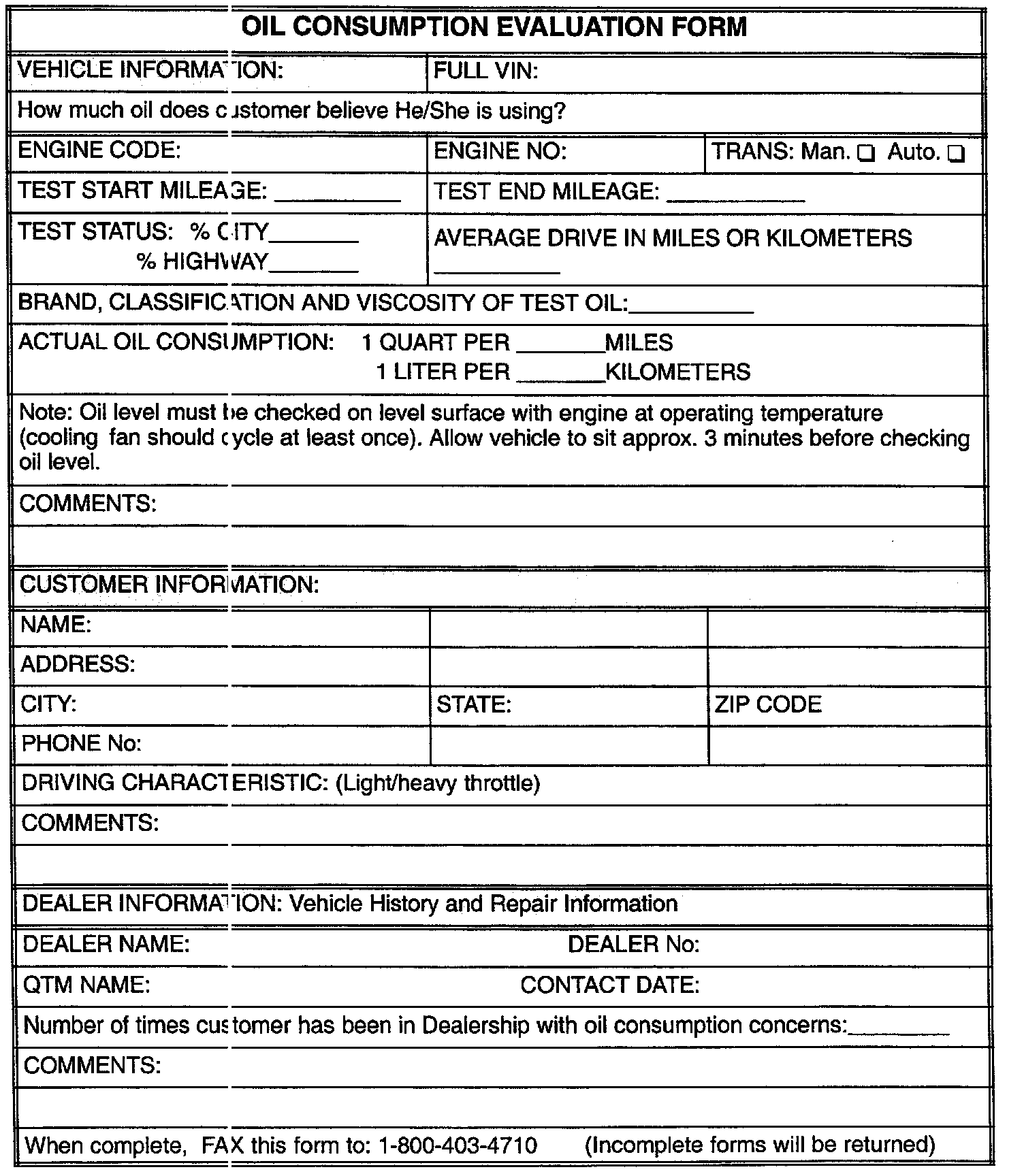 - Make a copy of the oil consumption evaluation form.