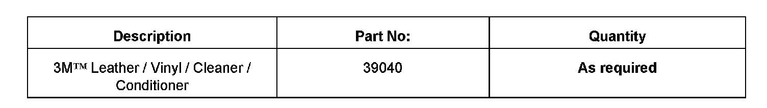 Several times a year use a specially formulated 3M Leather / Vinyl / Cleaner / Conditioner Part No. 39040 or equivalent.
