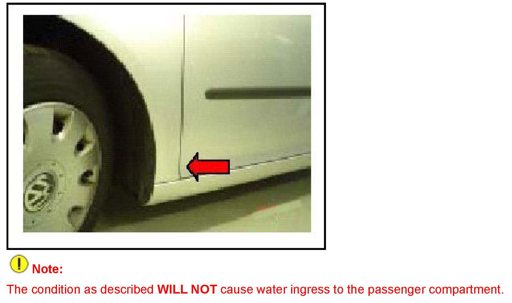 Perform the following counter-measures to prevent thawing water from getting to critical areas behind door, but allow the thawed water to drip on Front Wheel Housing Liner, from where it can flow away.