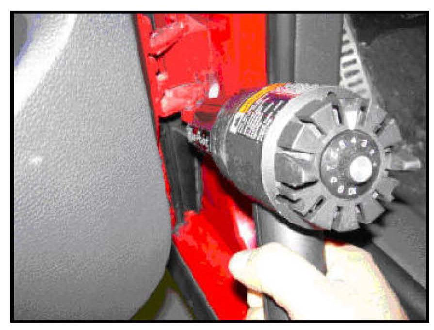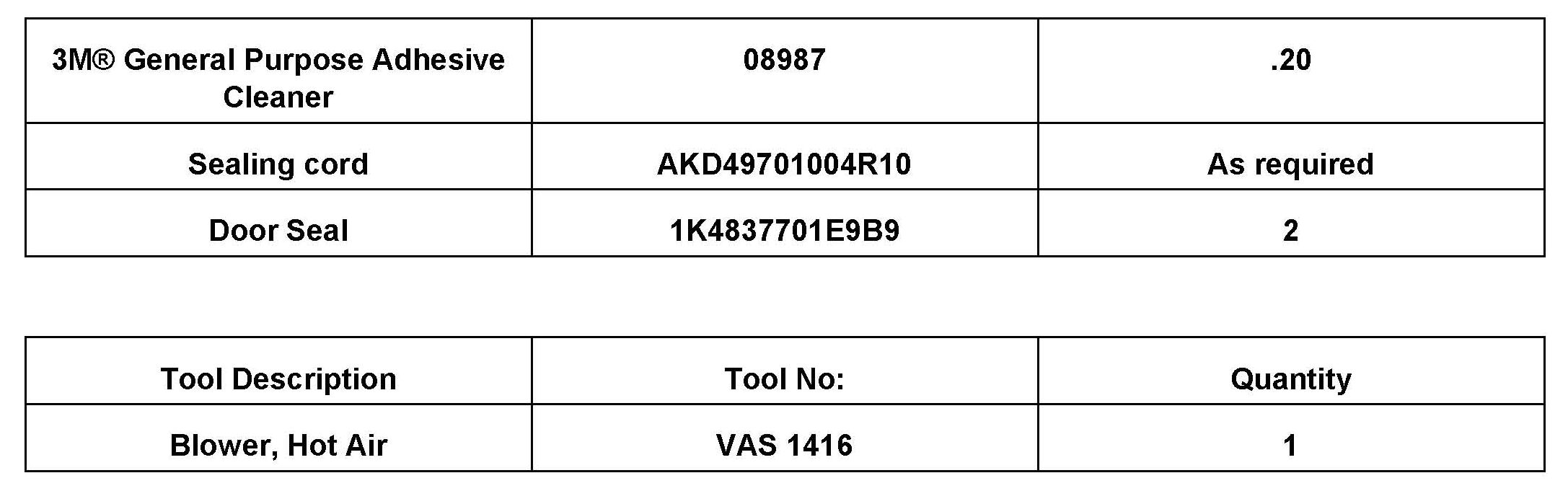 ^ Warm the area with the hot air blower VAS1416 to a maximum of 40°C (104°F) to ensure good adhesion of the foam piece.