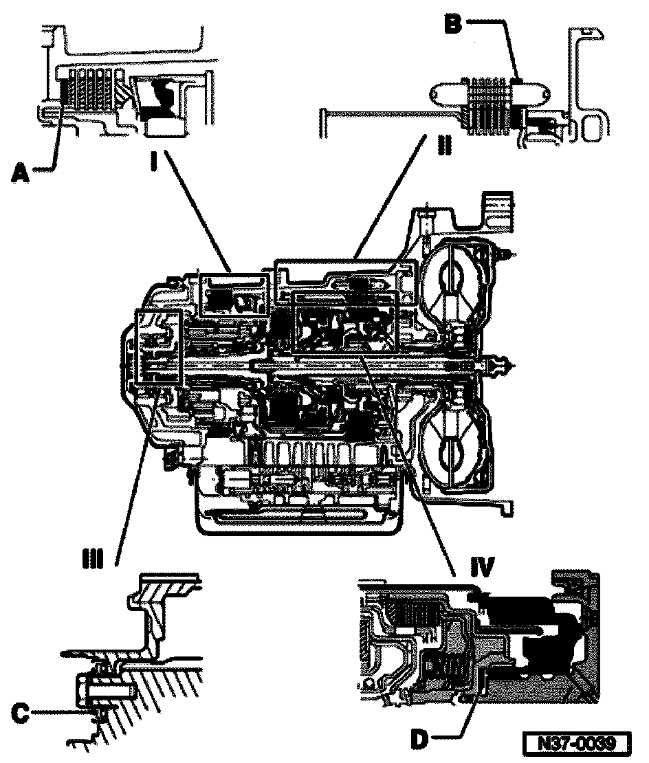 Overview of all planetary gearbox adjustments, 01M, 4 Spd. A/T