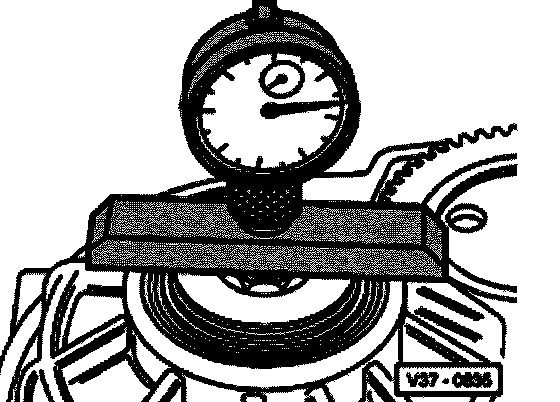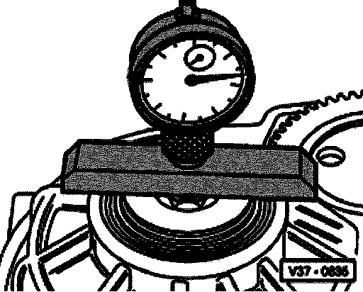 - Insert dial indicator in VW 382/7 and place tip on bolt of small input shaft.