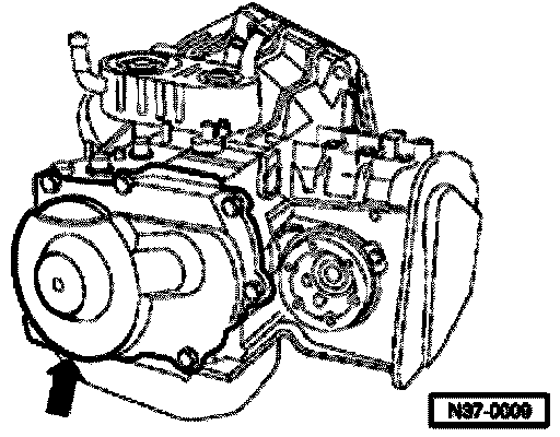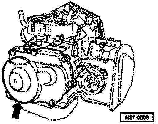 - Remove transmission housing cover with gasket (arrow).