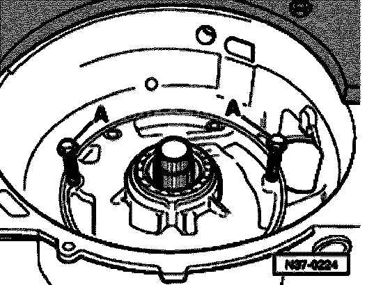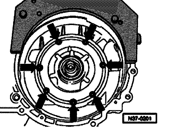 - Press ATF pump off gearbox by turning bolts -A- evenly.
