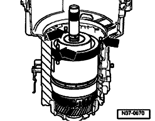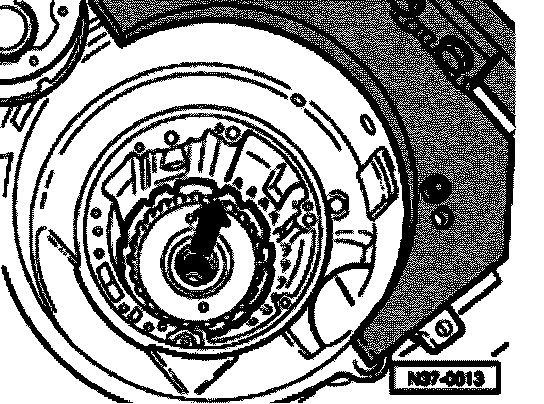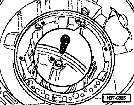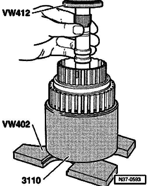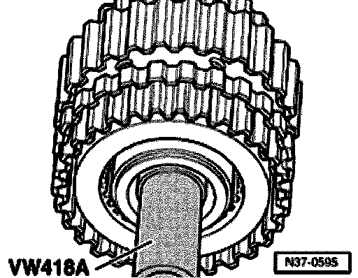 - Before pressing on, align VW 418 A centrally onto surface for axial needle bearing (this illustration shows -K3- from below).