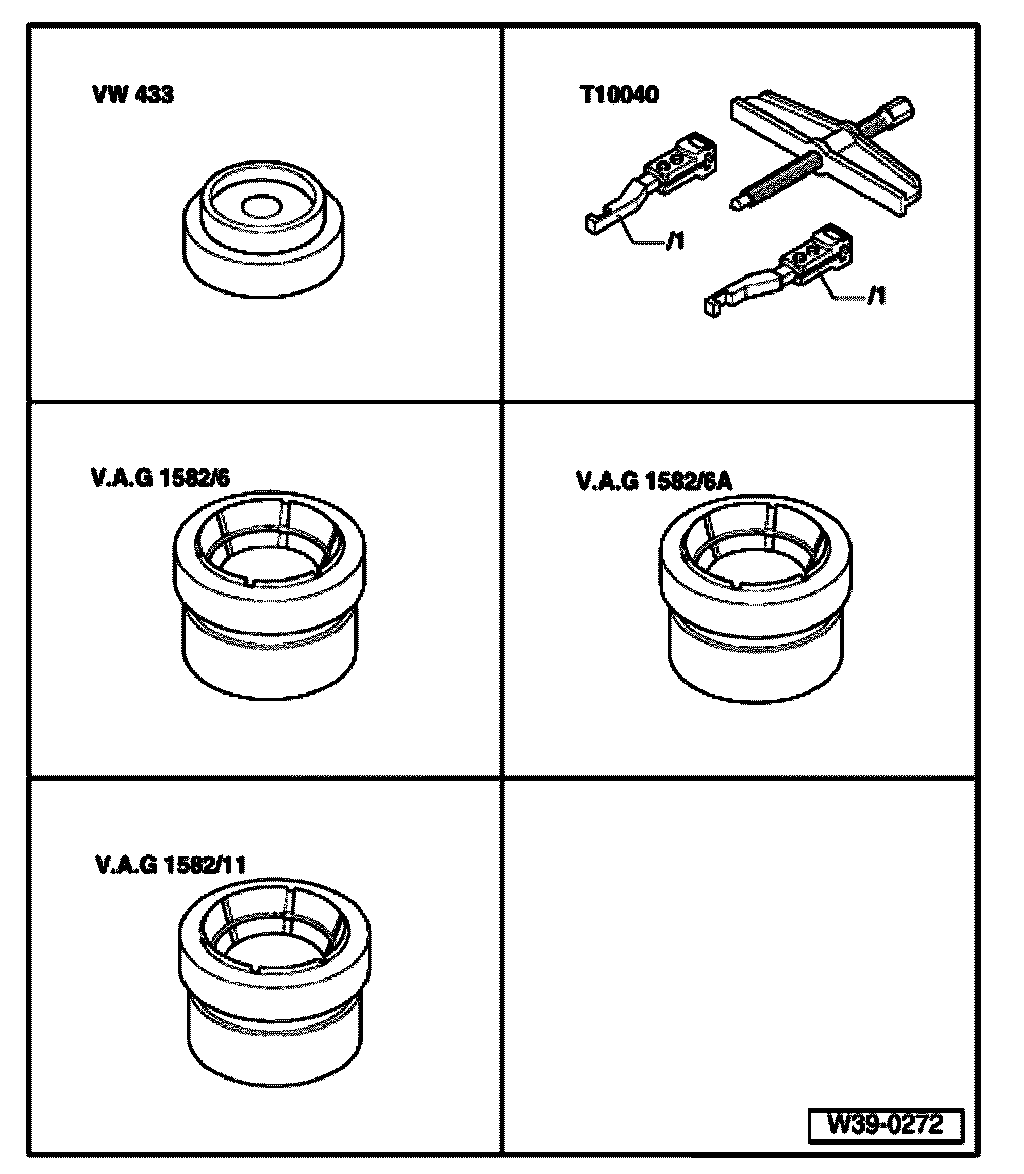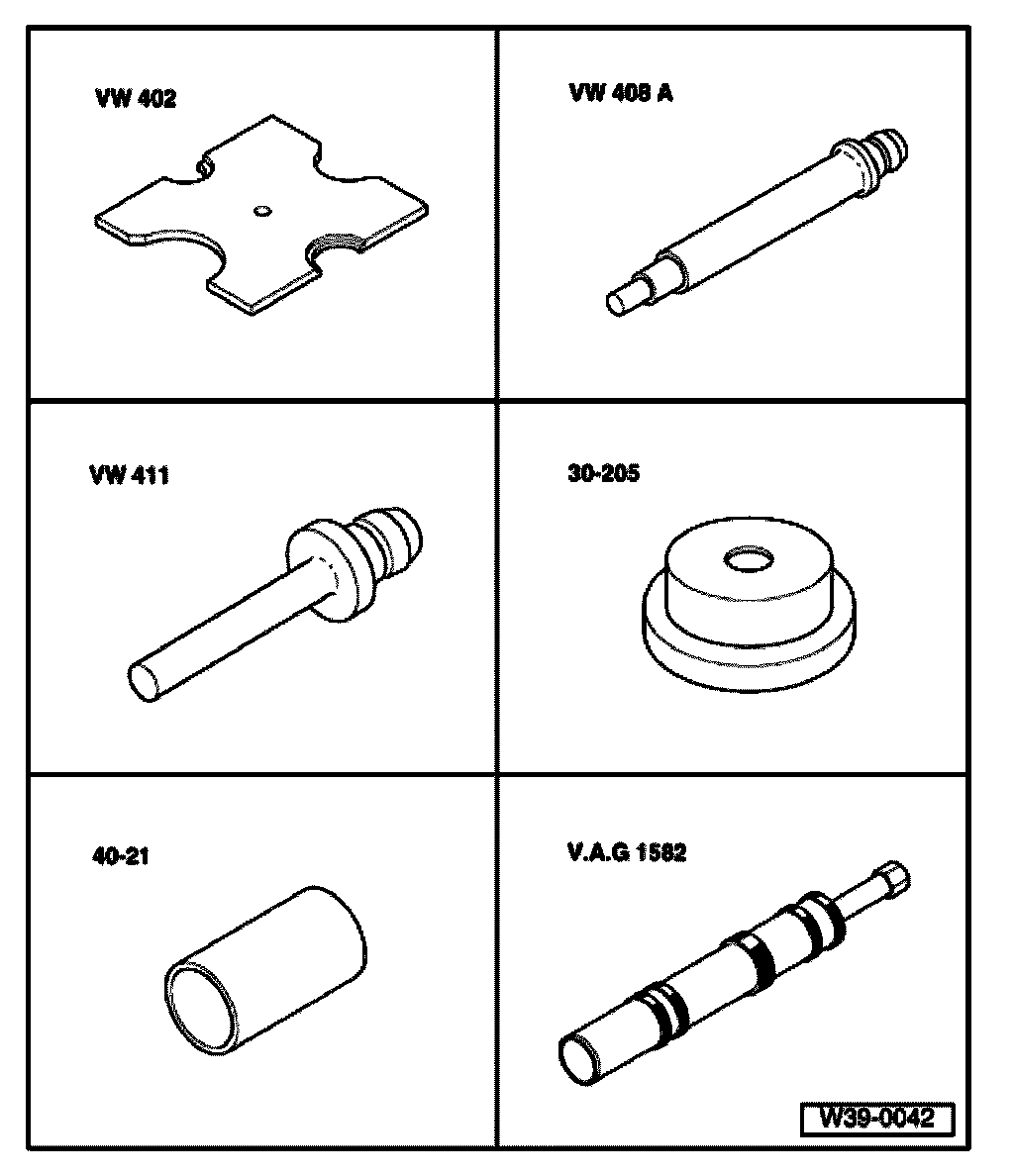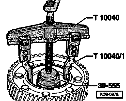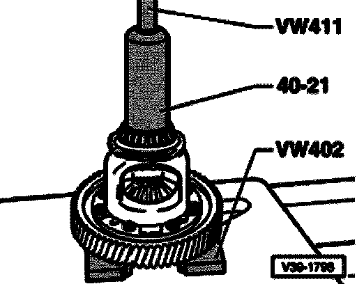 Note: For transmissions produced from 04.98, the tool for removing the tapered roller bearings in the final drive and differential is VAG 158218
