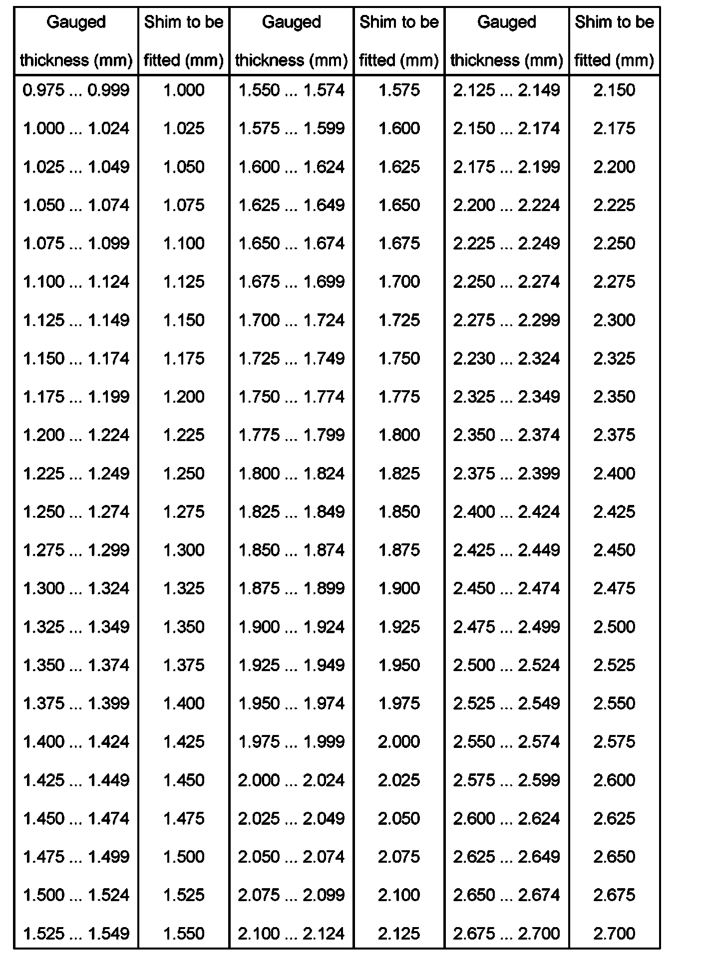 Different tolerances enable the required shim thickness to be measured precisely.
