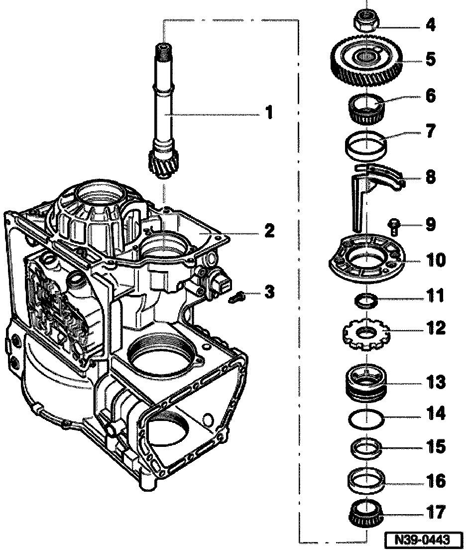 Note: To remove the drive pinion the selector shaft must be removed after taking out the parking lock disassembling and assembling parking lock.