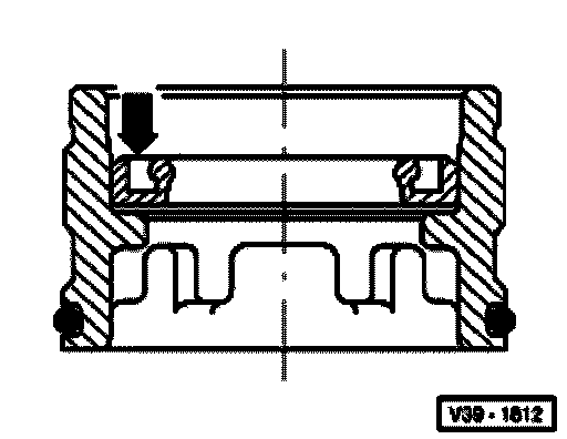 ^ Insert bearing supporting ring carefully. Sealing lip and spring must not be damaged.