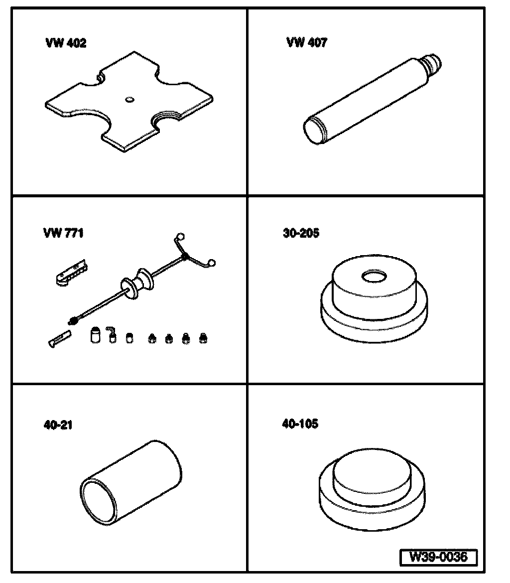 Note: For transmissions produced from 04.98, the tool for removing the tapered roller bearings in the final drive and differential is VAG 158218