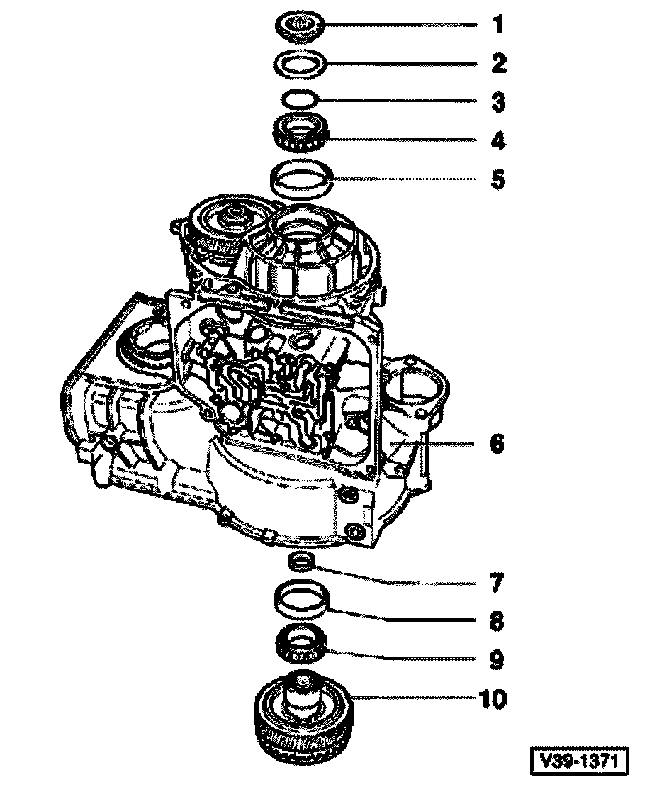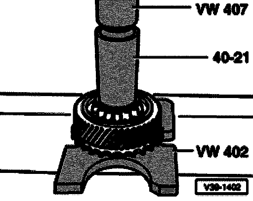 - Drive out input gear with VW 771 up to stop of tapered roller bearing inner race.
