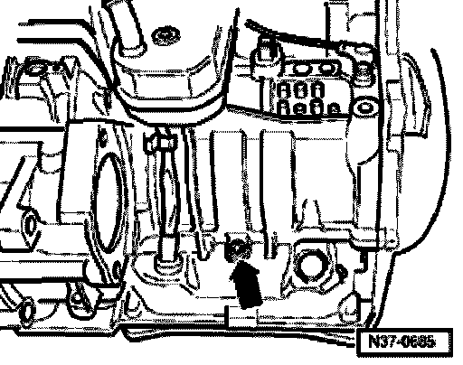 - Remove bolt (arrow) for main pressure drilling. Always replace bolt.