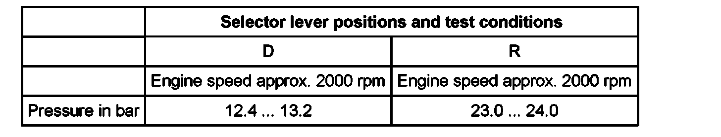 Main pressure, checking, 01M, 4 Spd. A/T