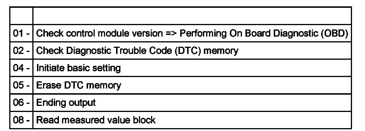 The VAG 1551 Scan Tool returns to the following start position after checking each function: