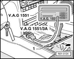 - With ignition switched off connect V.A.G 1551 using cable V.A.G 1551/3(A) to Data Link Connector.