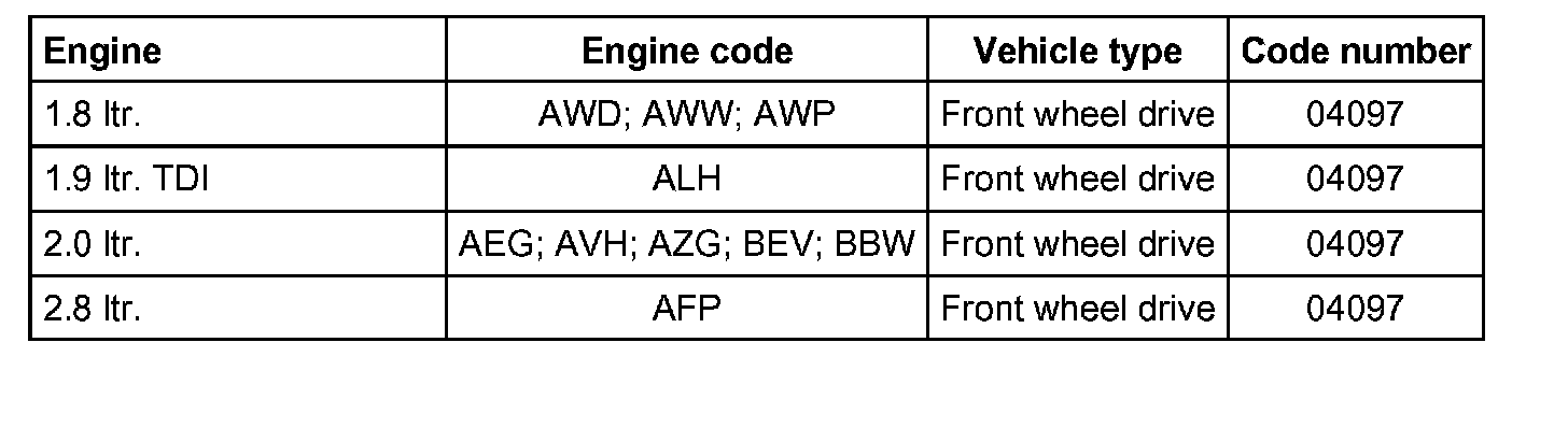 Note: The control unit must be coded with the same code number as the previous control unit installed in the vehicle.