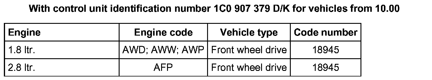 With control unit identification number 1C0 907 379 D/K for vehicles from 10.00