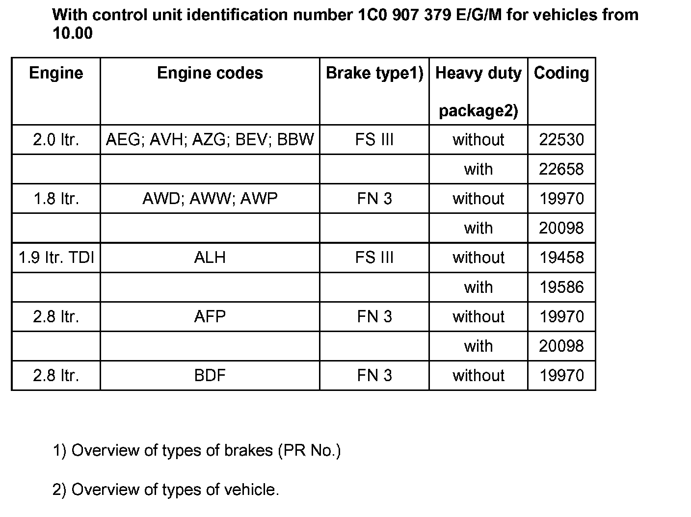 With control unit identification number 1C0 907 379 E/G/M for vehicles from 10.00