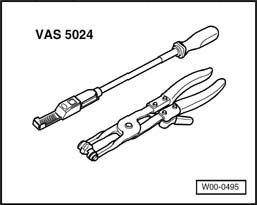 ^ Assembly tool VAS 5024 or hose clip pliers V.A.G 1921 are recommended for installing spring-type clips.