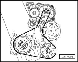 ^ Ensure, before installing poly V-belt, that all ancillaries (Generator, air conditioning compressor, power steering pump) are secured tightly.