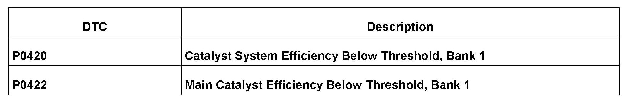 Is DTC P0420 (Catalyst System Efficiency Below Threshold, Bank 1) and/or DTC P0422 (Main Catalyst
