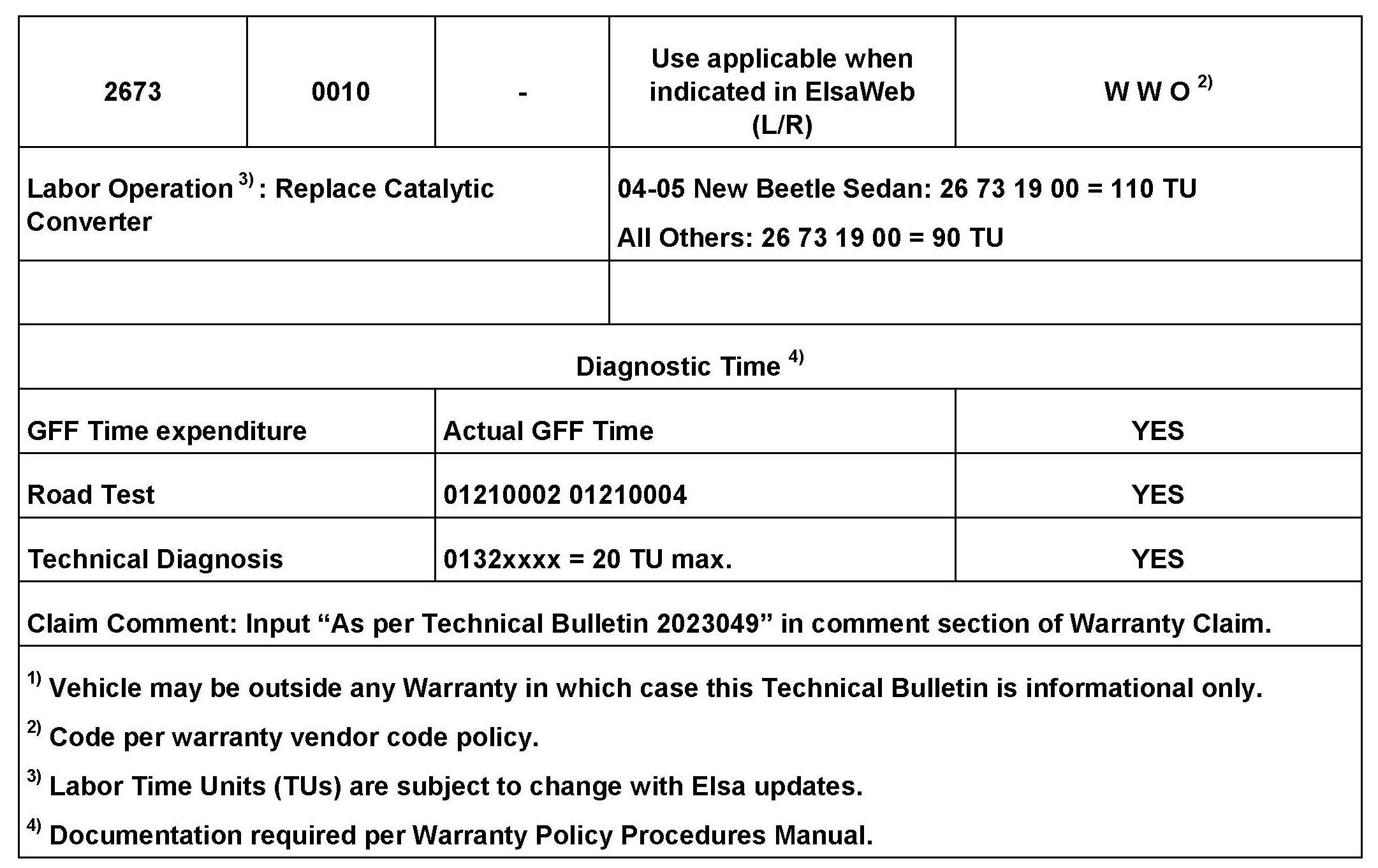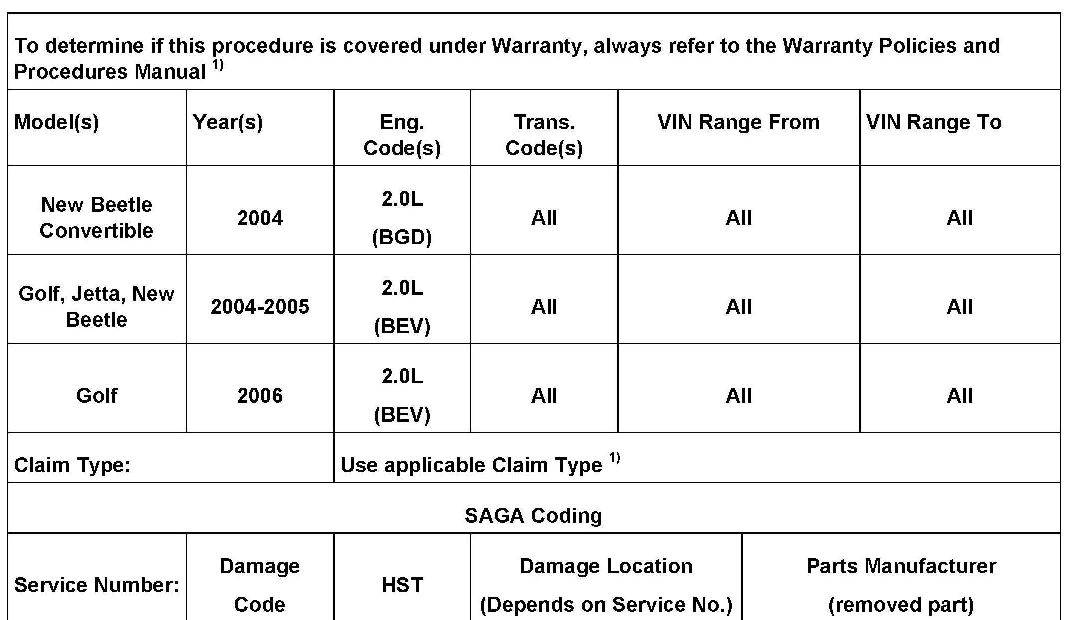 2023049 Supersedes T.B. V261003 dated April 20, 2010 to include the 2006 Golf 2.0L (BEV).