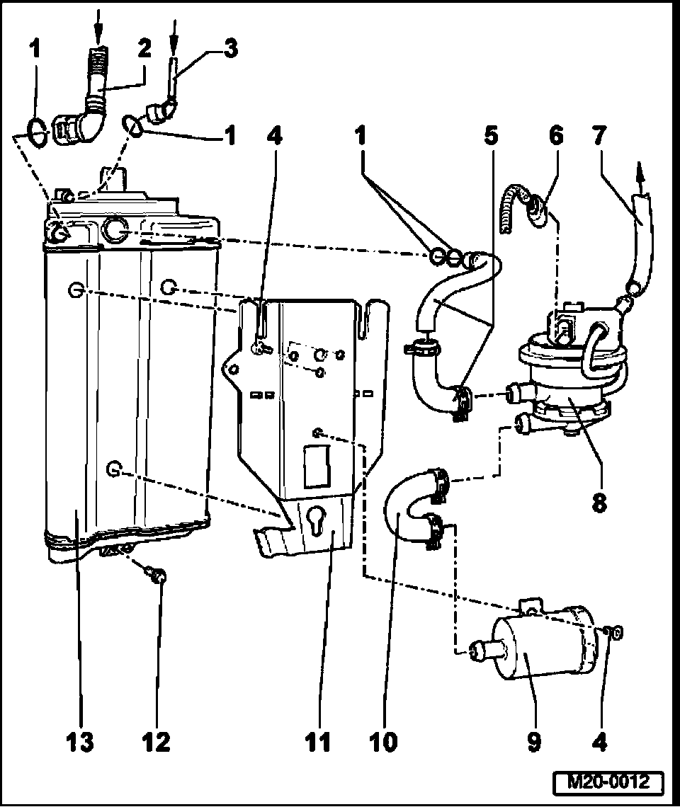 EVAP Canister System Components, Removing And Installing (vehicles With Engine Code AVH, BEV)