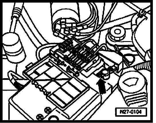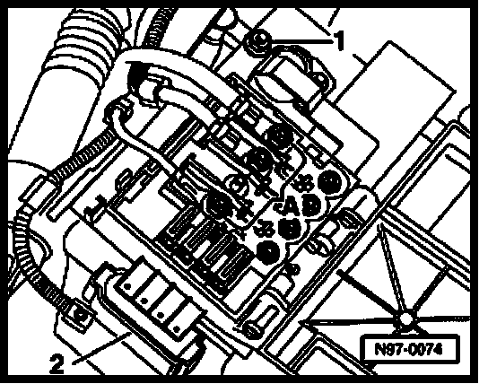 - Remove securing bolts -A- and remove cables to fuses, noting the installed positions.