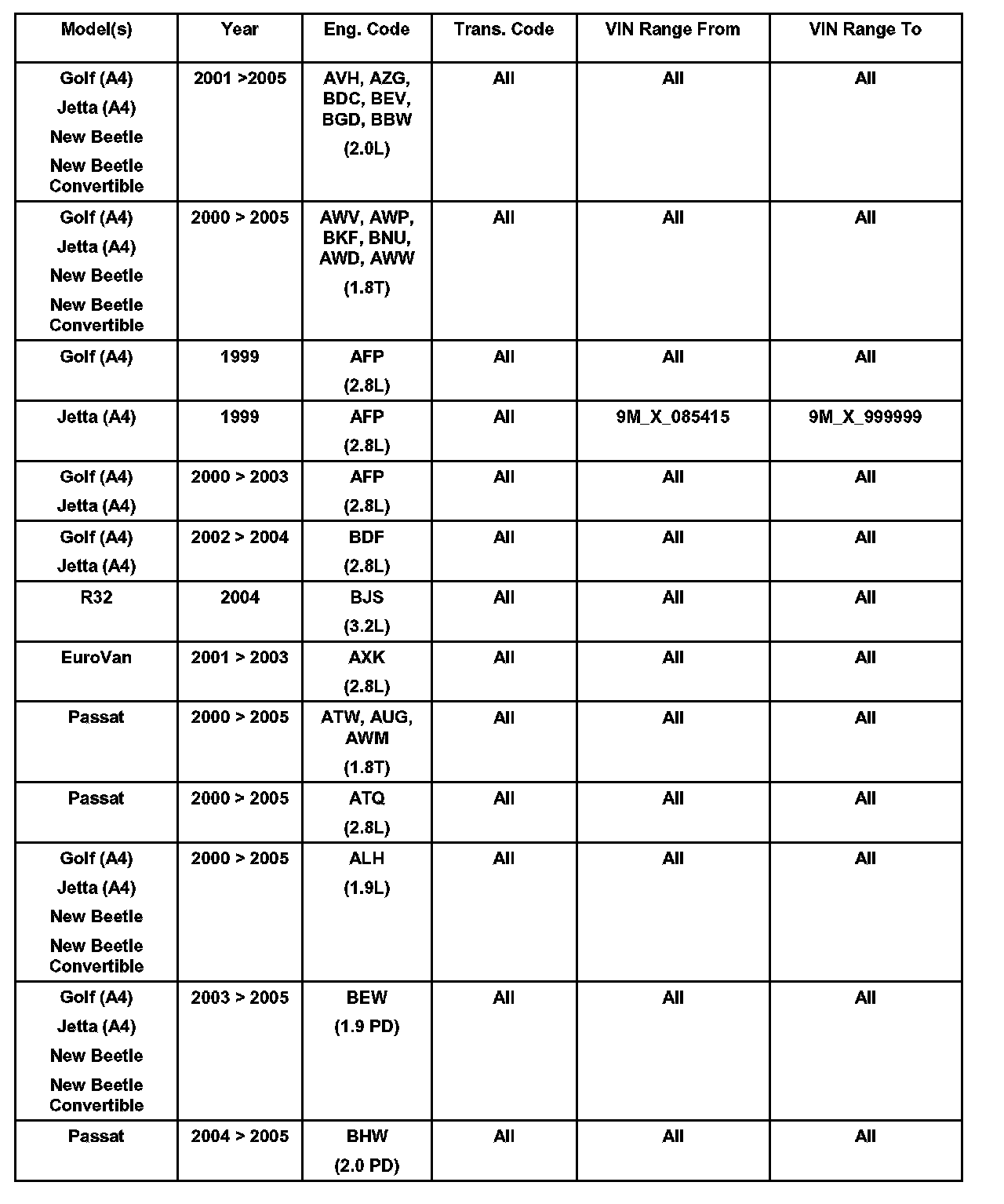 For Passat with engine codes: ATW, AUG, AWM, ATQ.