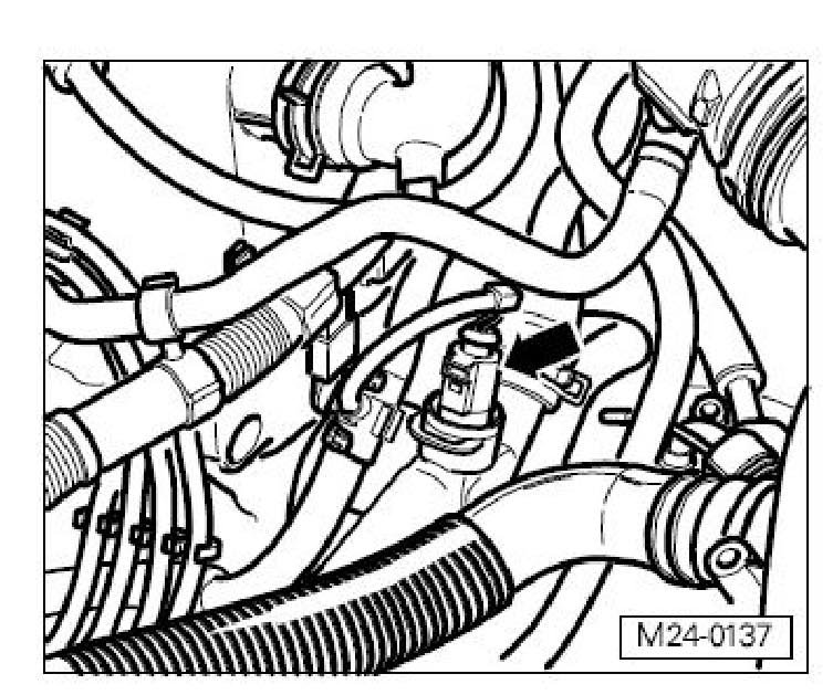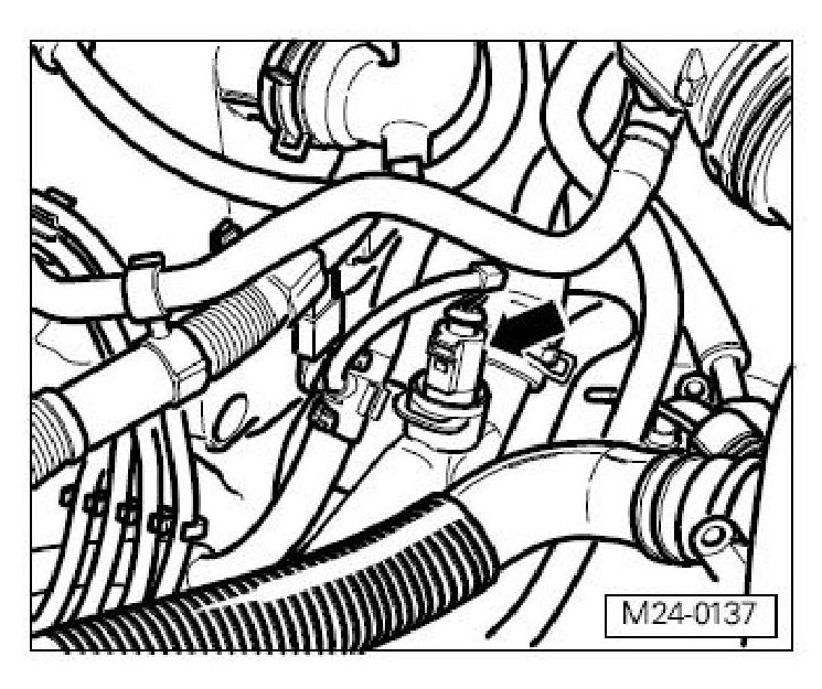 ^ Disconnect 4-pin connector from Engine Coolant Temperature (ECT) Sensor -G62- (arrow).