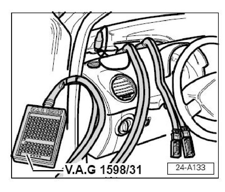 ^ Bridge VAS 5258 test probes 3 + 4 using auxiliary cables from VAG 1594C and observe display.