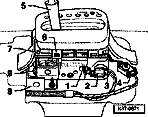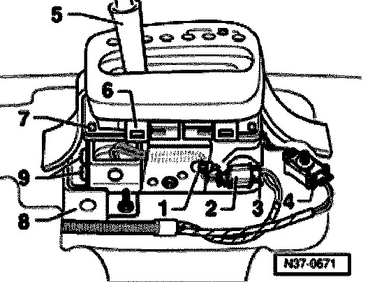 - Pry retainer for connector -2- carefully out of selector lever housing with a screwdriver.