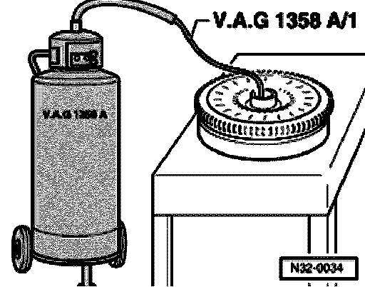 Extract ATF from torque converter using V.A.G 1358 A and probe V.A.G 1358 A/1.