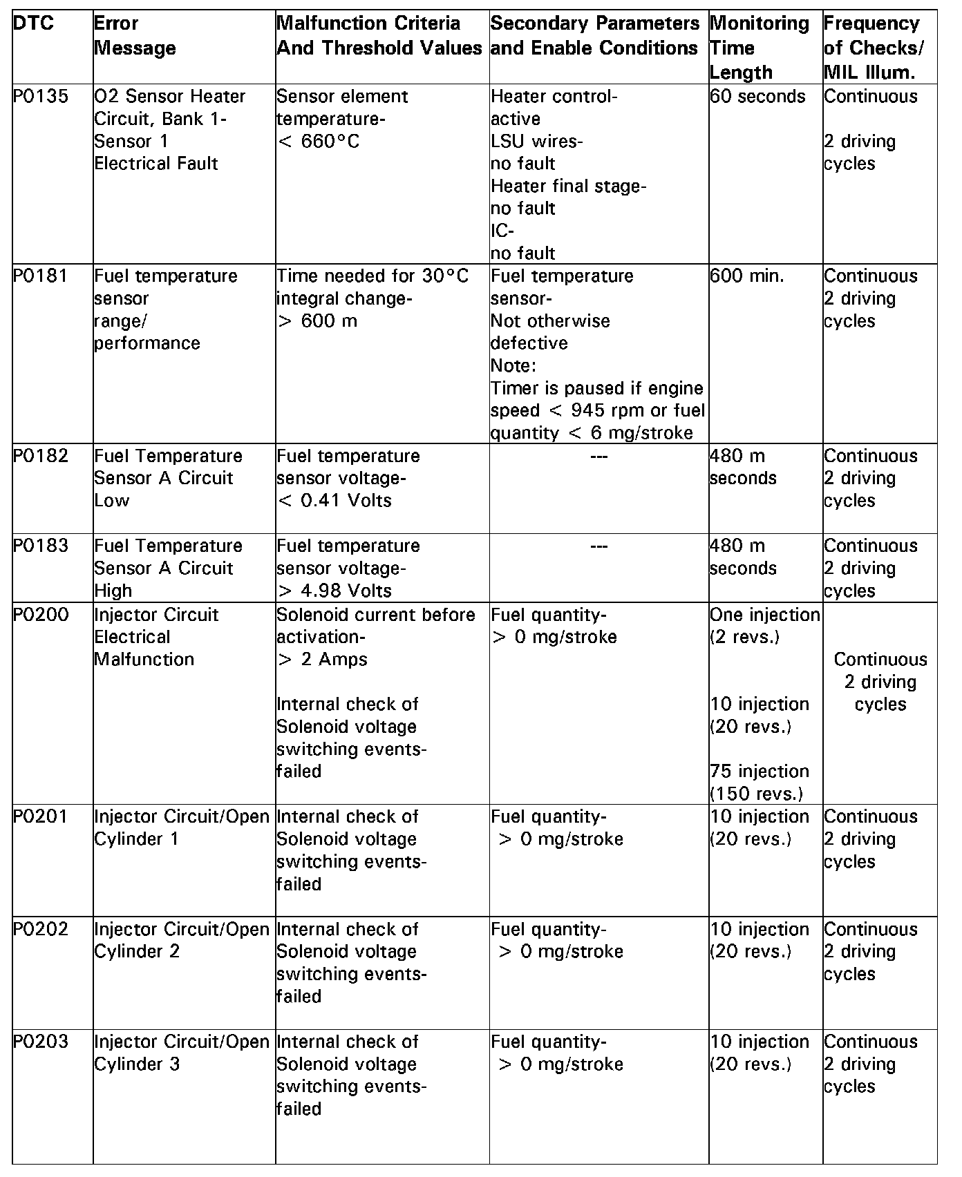 DTC P0135 - P0203: