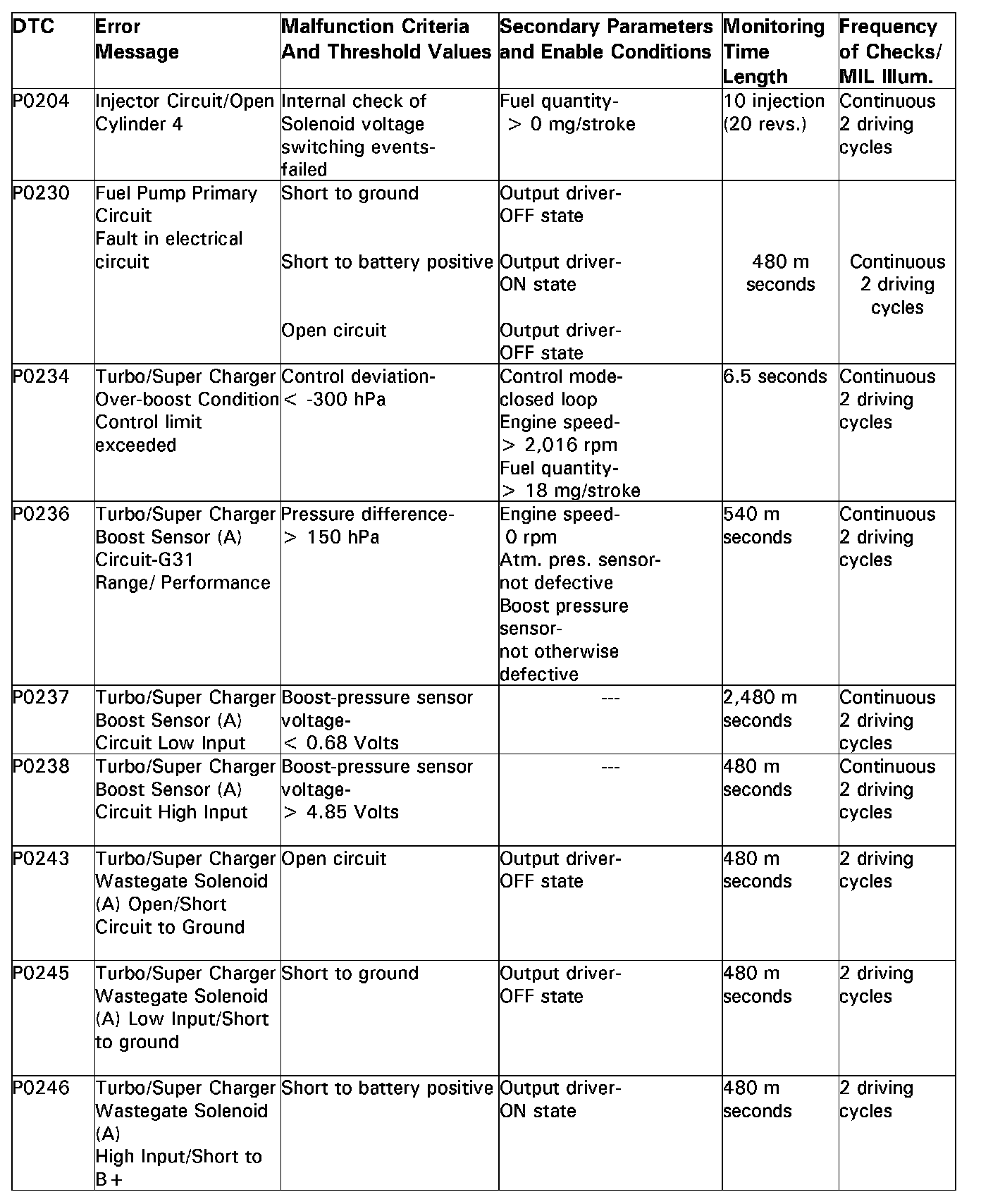 DTC P0204 - P0246: