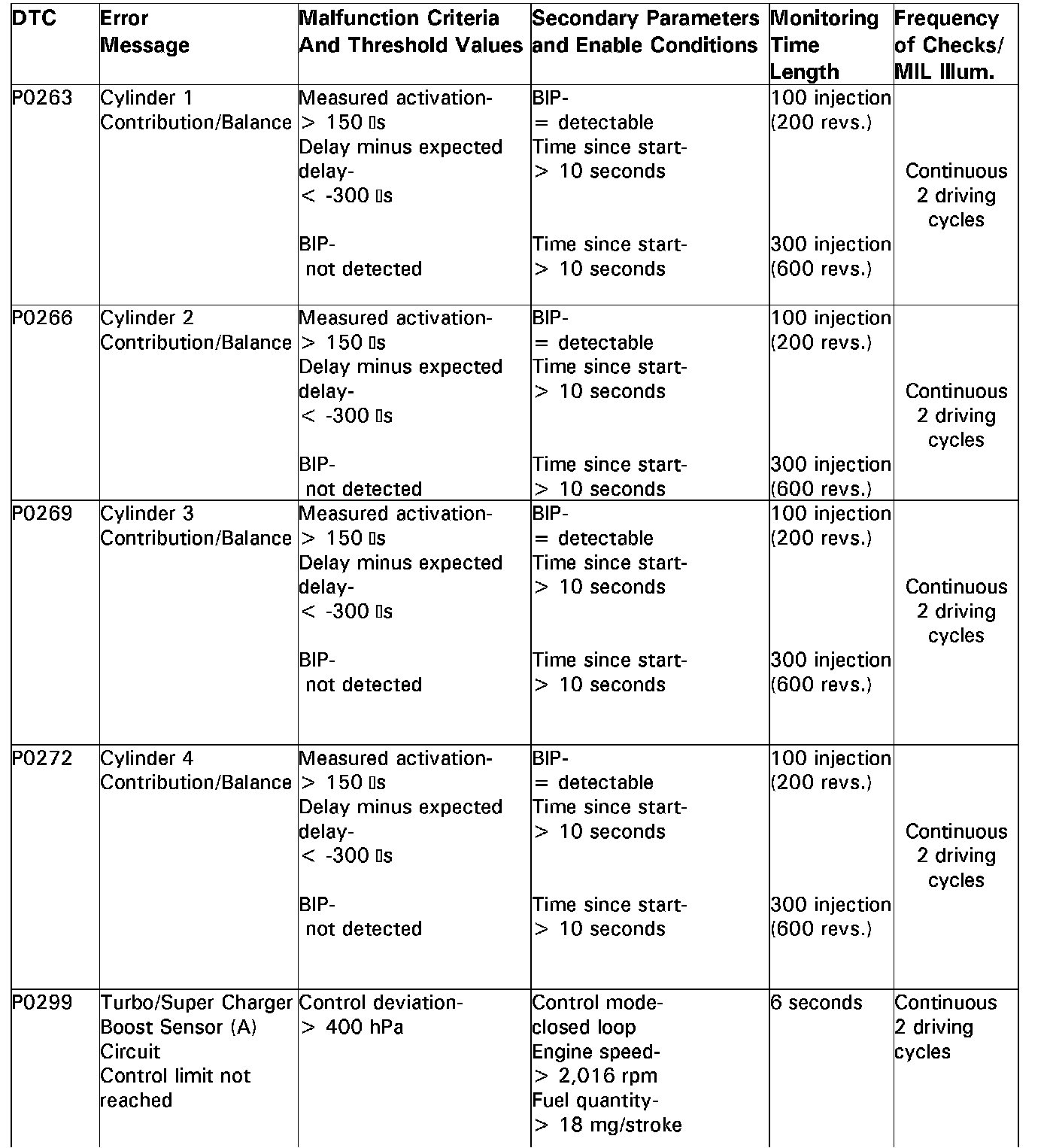 DTC P0263 - P0299: