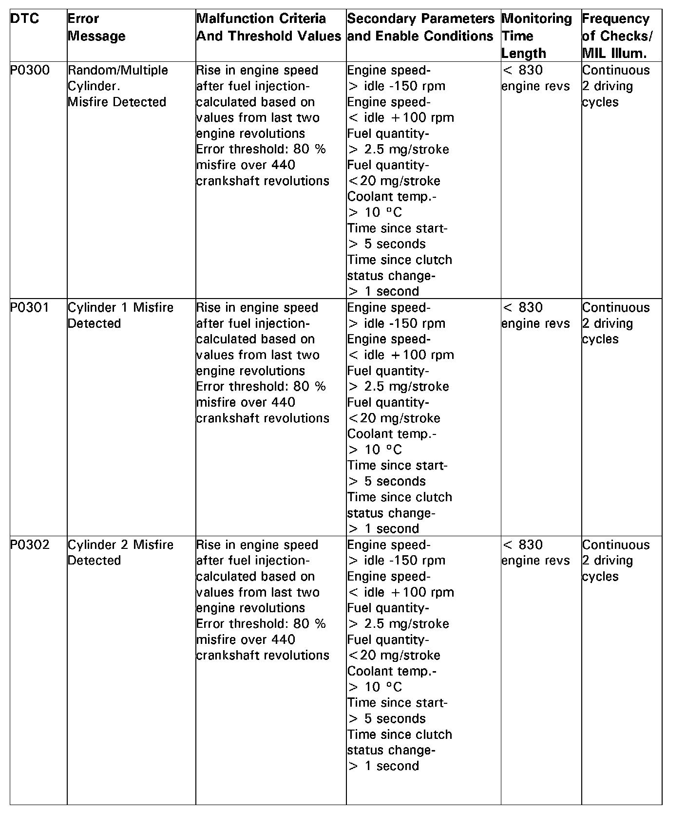 DTC P0300 - P0302: