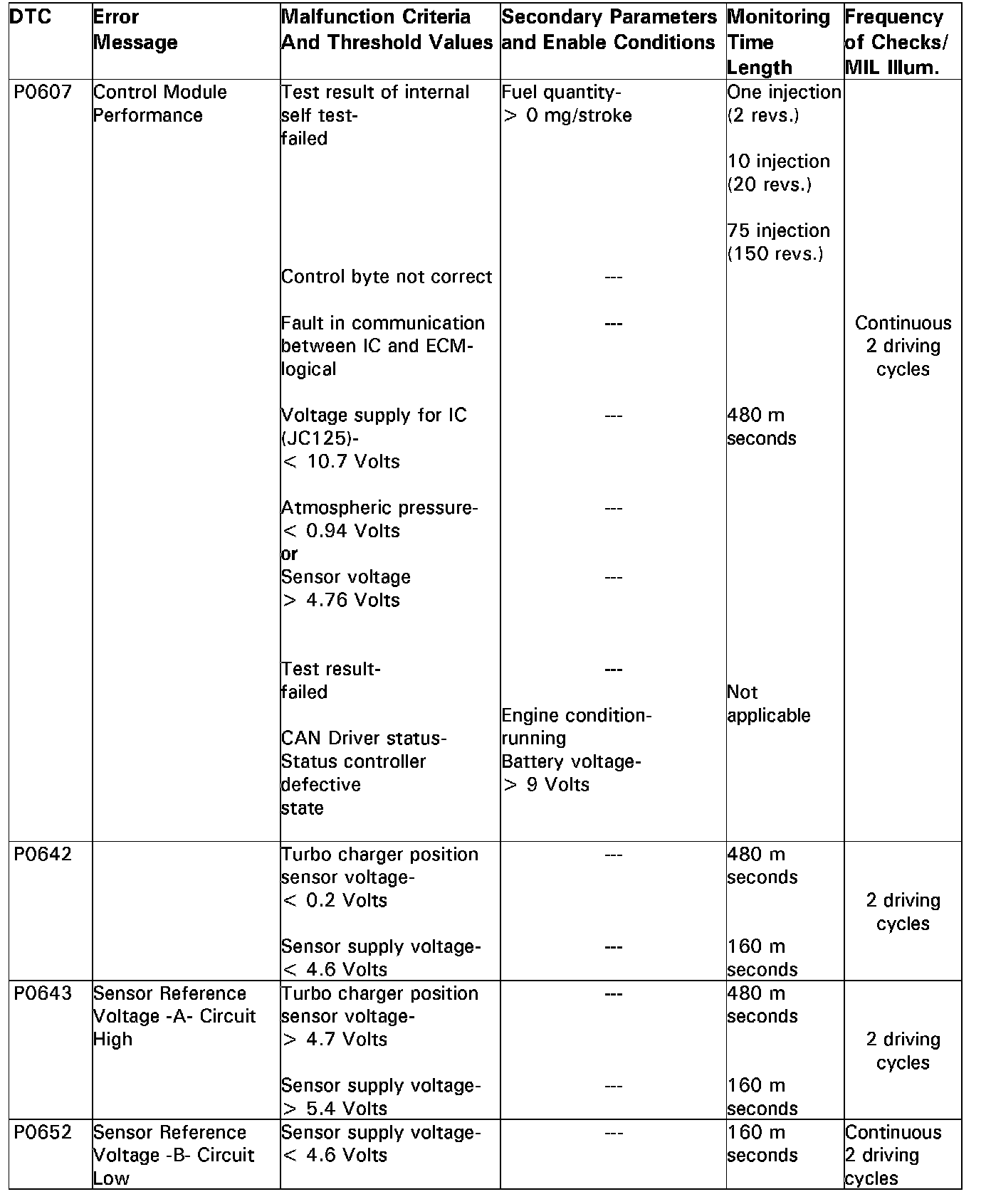 DTC P0607 - P0652: