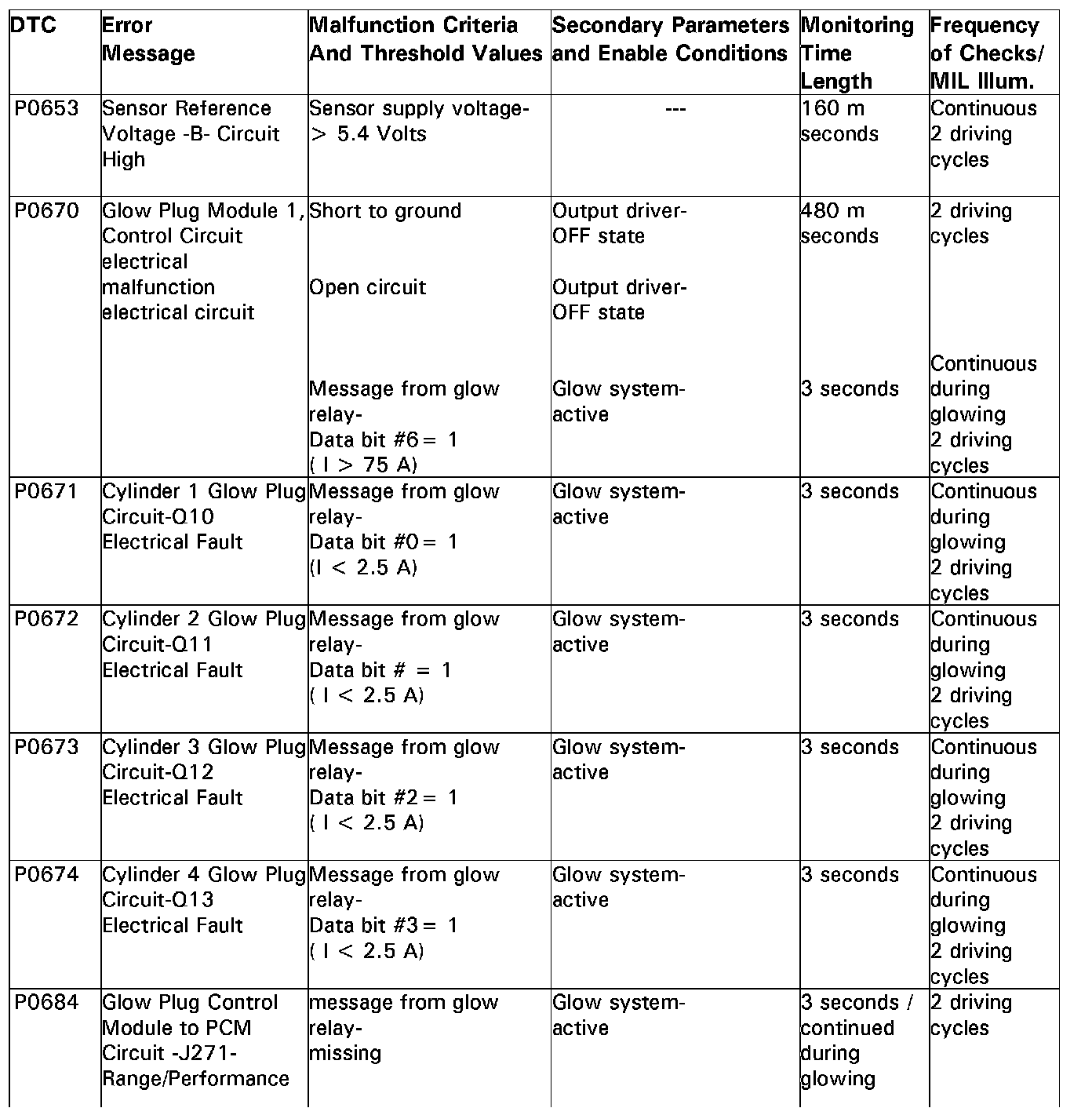 DTC P0653 - P0684: